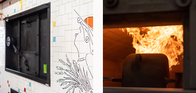 窯の下で熾した火が「グラ」という吹き出し口を介して焼窯の中を熱します。方向を変えながら全体をまんべんなく温め、その余熱でパンを焼いていきます。