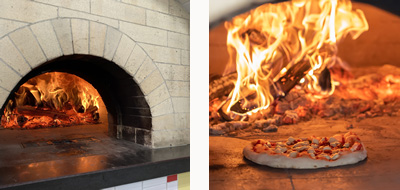 窯の中で直接薪を燃やして、窯床を熱してピザを焼きます。窯全体の輻射熱をうまく使いながら美味しく焼き上げるには、経験が必要です。